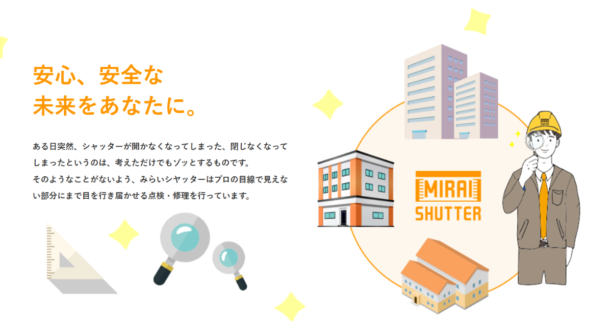 みらいシヤッターは、修理や点検に特化した専門業者で、防火シャッターの法定点検にも対応しています。