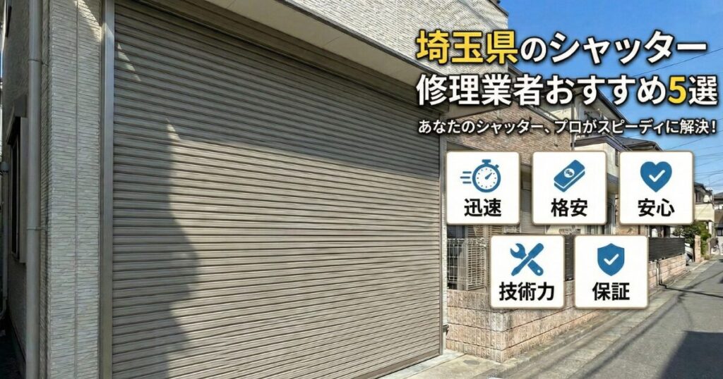 シャッター修理業者をすぐに知りたい方は、「埼玉県のシャッター修理業者おすすめ5選」をご確認ください。 ※クリックするとジャンプします。